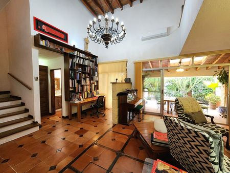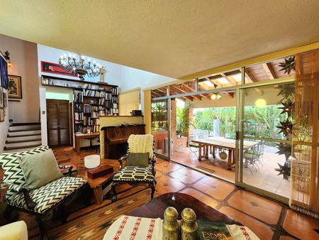 Casa con arquitectura de estilo colonial mexicano, con espacios amplios, terrazas, bóvedas catalanas y detalles en madera.