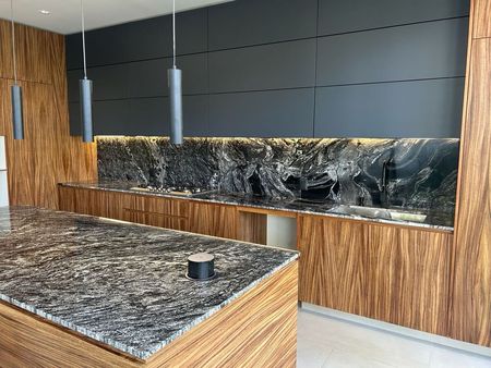 La cocina, totalmente equipada, con cubierta de granito o cuarzo, te invita a crear deliciosas comidas y compartir momentos especiales con tus seres queridos.