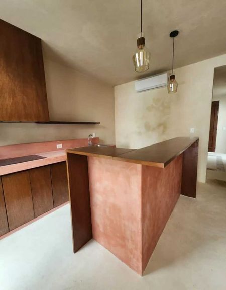 Cocina equipada con parrilla de inducción y campana extractora