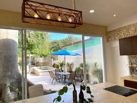 Casa Ya' axche' es una hermosa casa colonial que conserva su historia e identidad en cada uno de sus muros de mampostería, hermosos pisos de pasta y techos de doble altura. La casa es muy fresca por la naturaleza que la rodea y su patio amplio con árboles grandes.
