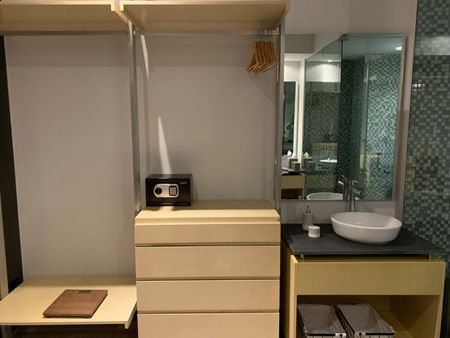 Recámara principal con baño completo, walk in closet, cama king size, black out, 2da recámara o cuarto de tv, closet, no tiene black out, sala, comedor, cocina abierta, área de lavado pequeña con lavadora y secadora, 2 lugares de estacionamiento en batería, recepción 24/7, 2 elevador, gimnasio, vista panorámica, seguridad 24/7, 57 depto en total, mascotas de preferencia no, mantenimiento ($4,750)