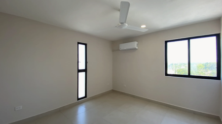 Se incluyen aires acondicionados y abanicos sencillos blancos instalados en Recámara