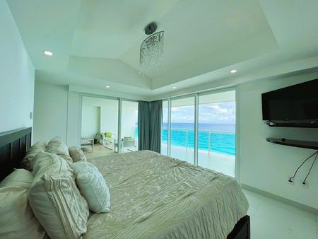 Ofrece una impresionante vista tanto al Mar Caribe como a la Laguna. Con una superficie de 226.55 m², el espacio está distribuido en tres recámaras, dos de ellas con vestidor y una con closet de pared a pared, además de tres baños completos.