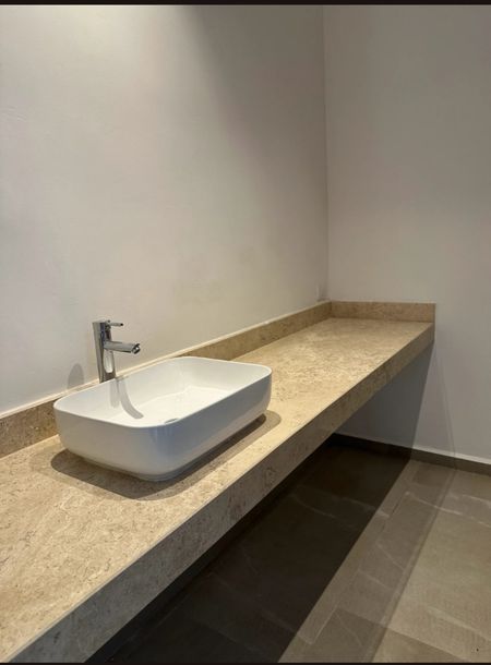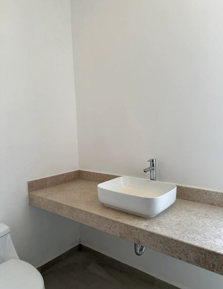 - 1 recámara con baño completo con meseta de mármol,lavabo de sobreponer e inodoro de una pieza.