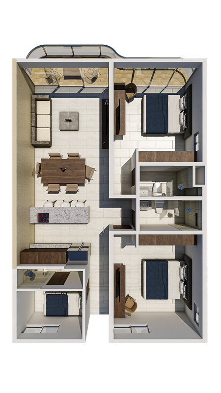 El desarrollo cuenta con 3 Torres; Torre 1 (A y B), Torre 2 (C y D) y Torre 3 (E y F)
